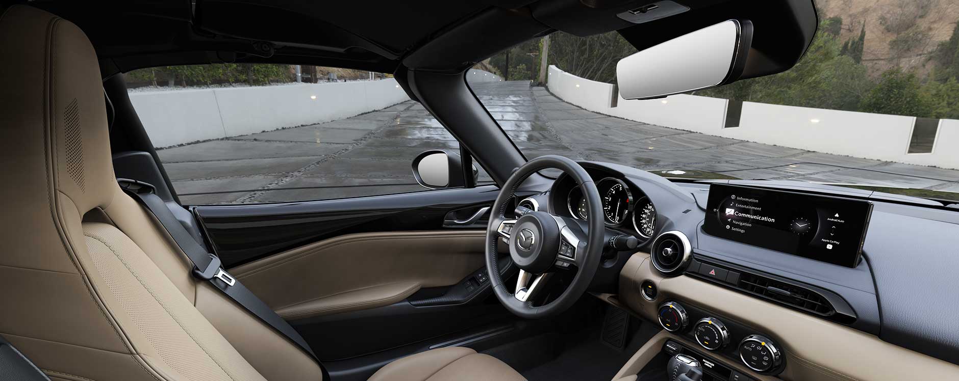 MX-5 RF, el emocionante descapotable de techo rígido retráctil que combina la emoción de la conducción deportiva con la sofisticación de un diseño elegante y aerodinámico.